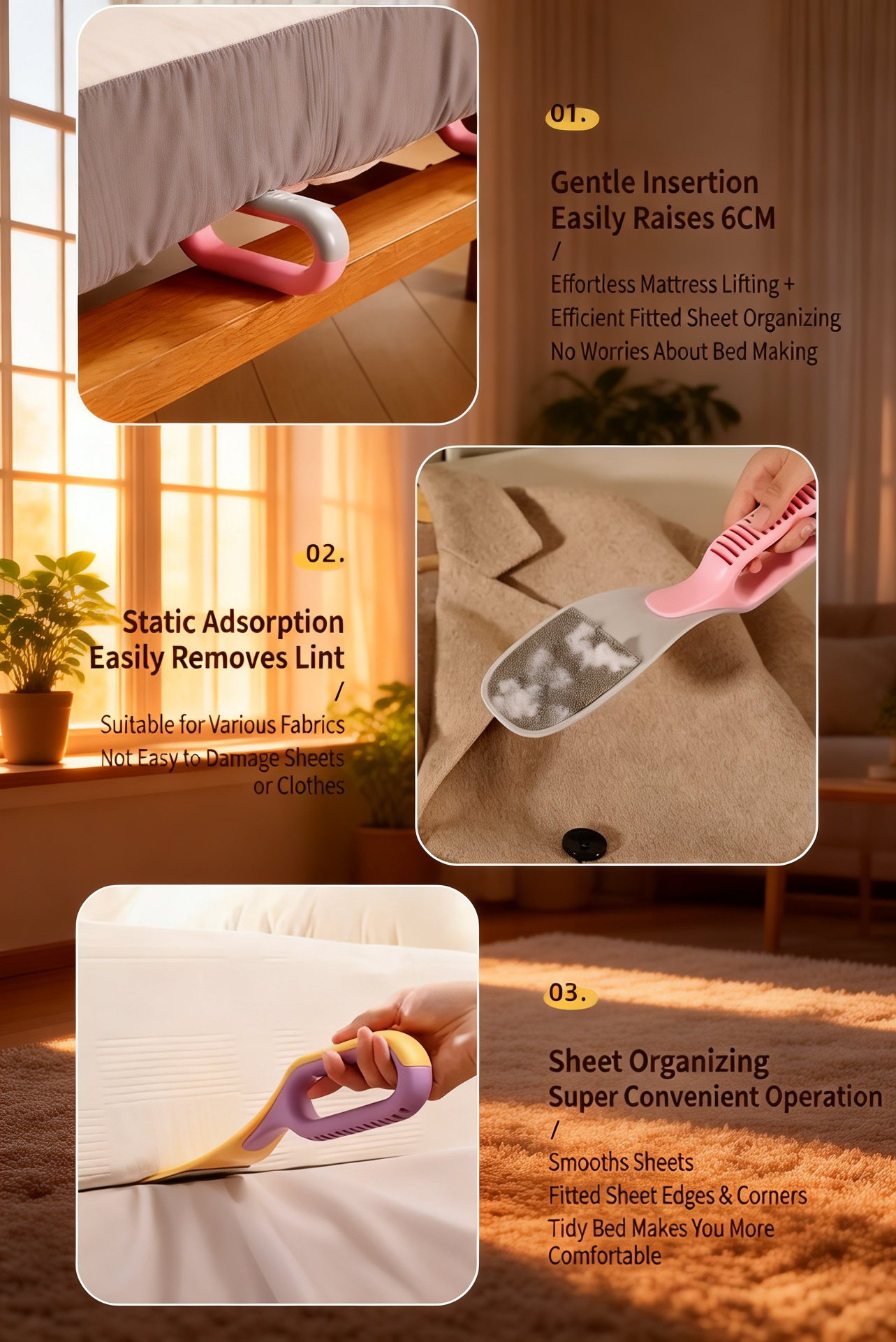 ● Effortlessly lift and organize your mattress with the 2-in-1 design, making bed-making and cleaning tasks quicker and easier every day.